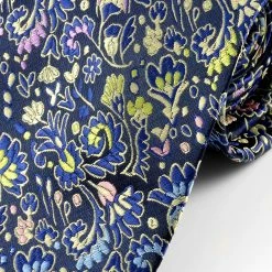Tailor Toki Cravate en Soie Bleue Motifs Fleurs