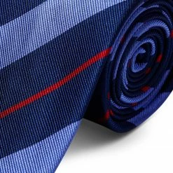 Trendhim Cravate en soie bleu marine et bleu pastel Ă rayures rouges – 8 cm