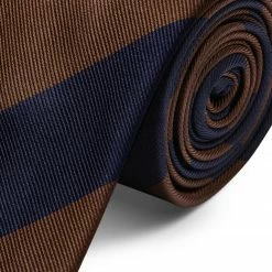 Trendhim Cravate en soie bleu marine et marron – 8 cm