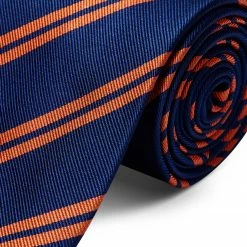 Trendhim Cravate en soie à rayures orange et bleu marine – 8 cm
