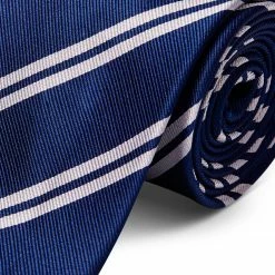 Trendhim Cravate en soie bleu marine Ă rayures blanches – 6 cm