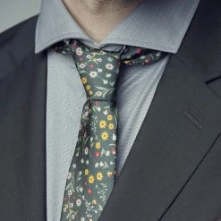 Une palette de couleurs classique et rétro donne son style si particulier à cette cravate : des touches de jaune et des accents de gris et de rouge sur un élégant fond vert lui donnent un caractÚre ludique et légÚrement espiÚgle.
