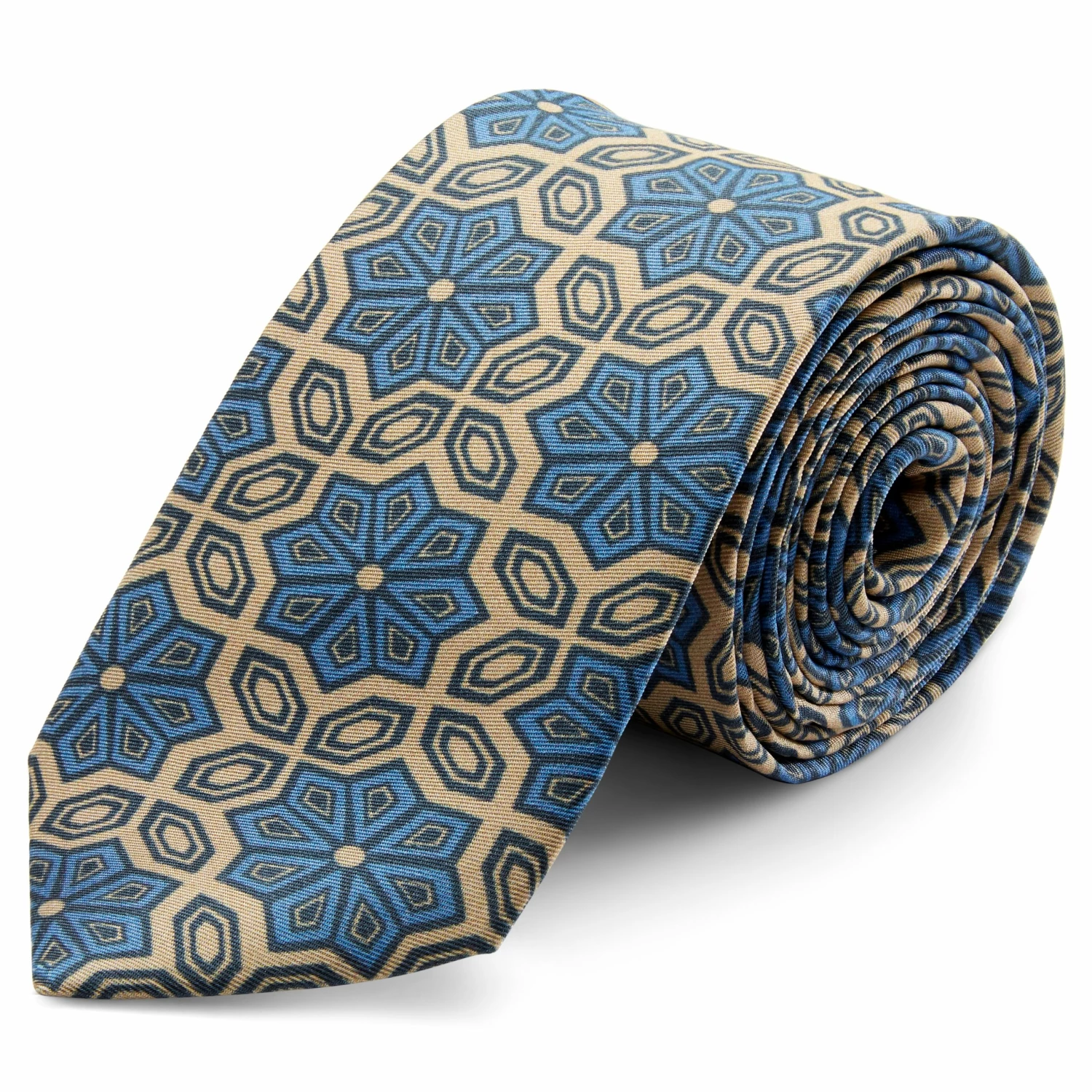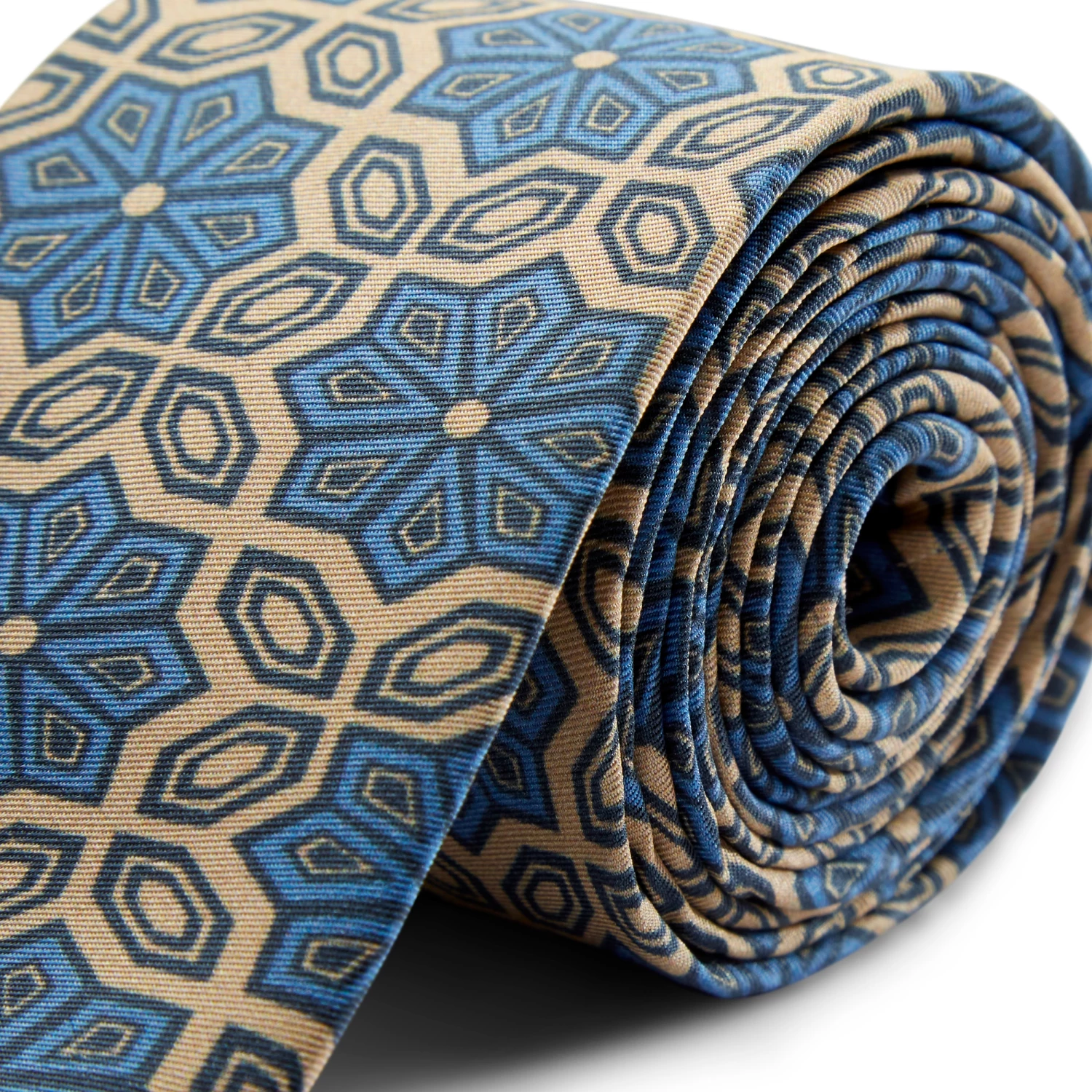 Cette cravate aux motifs riches et audacieux n’est rien de moins que l’expression de votre style sophistiquĂ©e. Le motif beige et bleu attire l’attention sur votre encolure, ajoutant un Ă©lĂ©ment tape-Ă -l’oeil Ă votre costume.