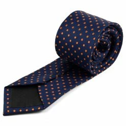 Voici une superbe cravate bleu royal et pois orange vif pour une touche de lumiÚre! Ce motif coloré ira trÚs bien avec une chemise unie et toutes les couleurs de costume..