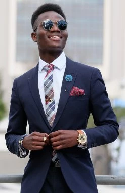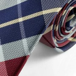 Cette cravate à motif écossais entremêle les tons bleu clair, bleu foncé et bordeaux avec quelques nuances de noir et de crème. Un design qui s’accorde avec tout ou presque.