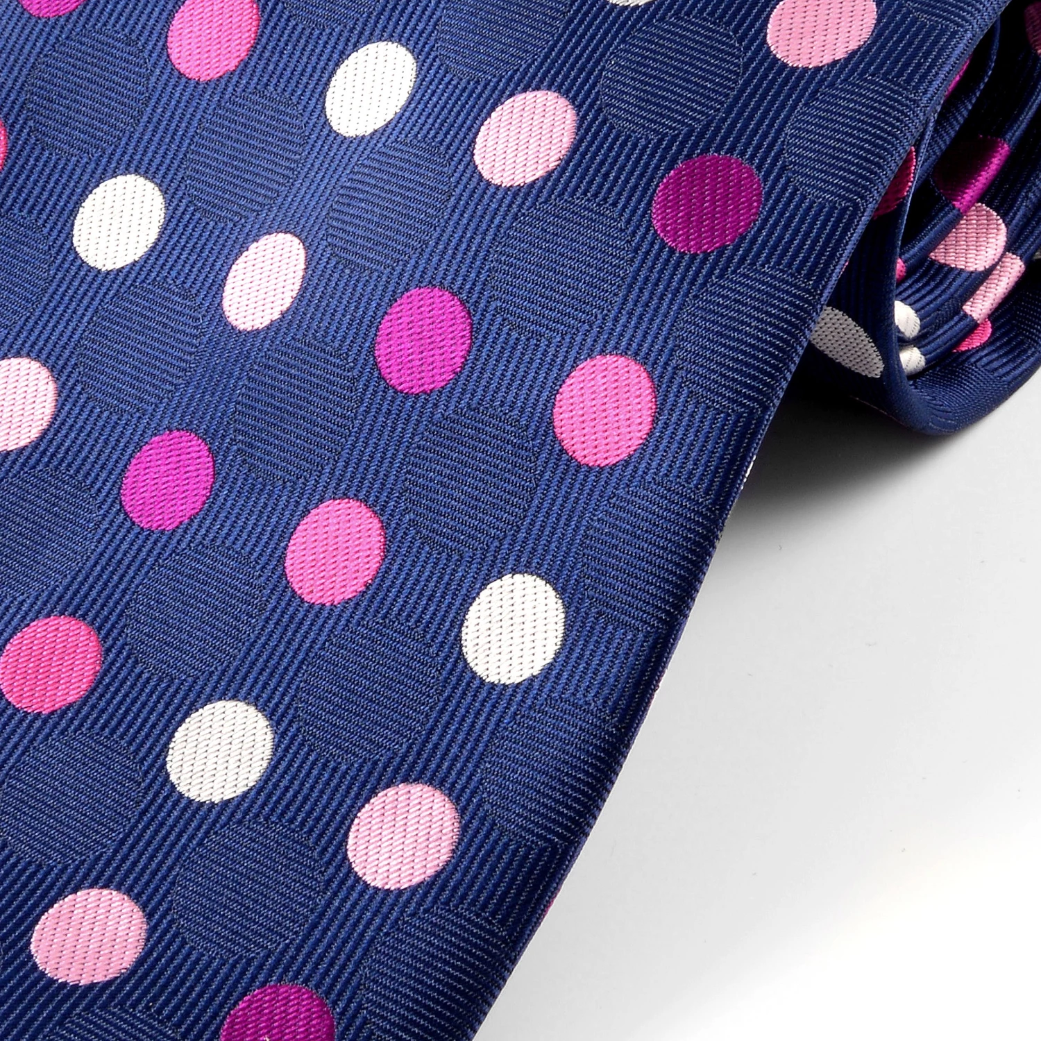 Cette cravate faite main est composĂ©e d’un fond bleu parsemĂ© de pois blancs et rose. Ce motif original apporte une touche disco Ă votre look, un cĂŽtĂ© fun tout en restant chic.