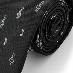 Les cravates noires sont gĂ©nĂ©ralement trĂšs formelles. Et parfois trop formelles. Nous vous proposons d’ajouter un peu de couleur et une touche de fun Ă votre look grĂące Ă cette cravate musicale.