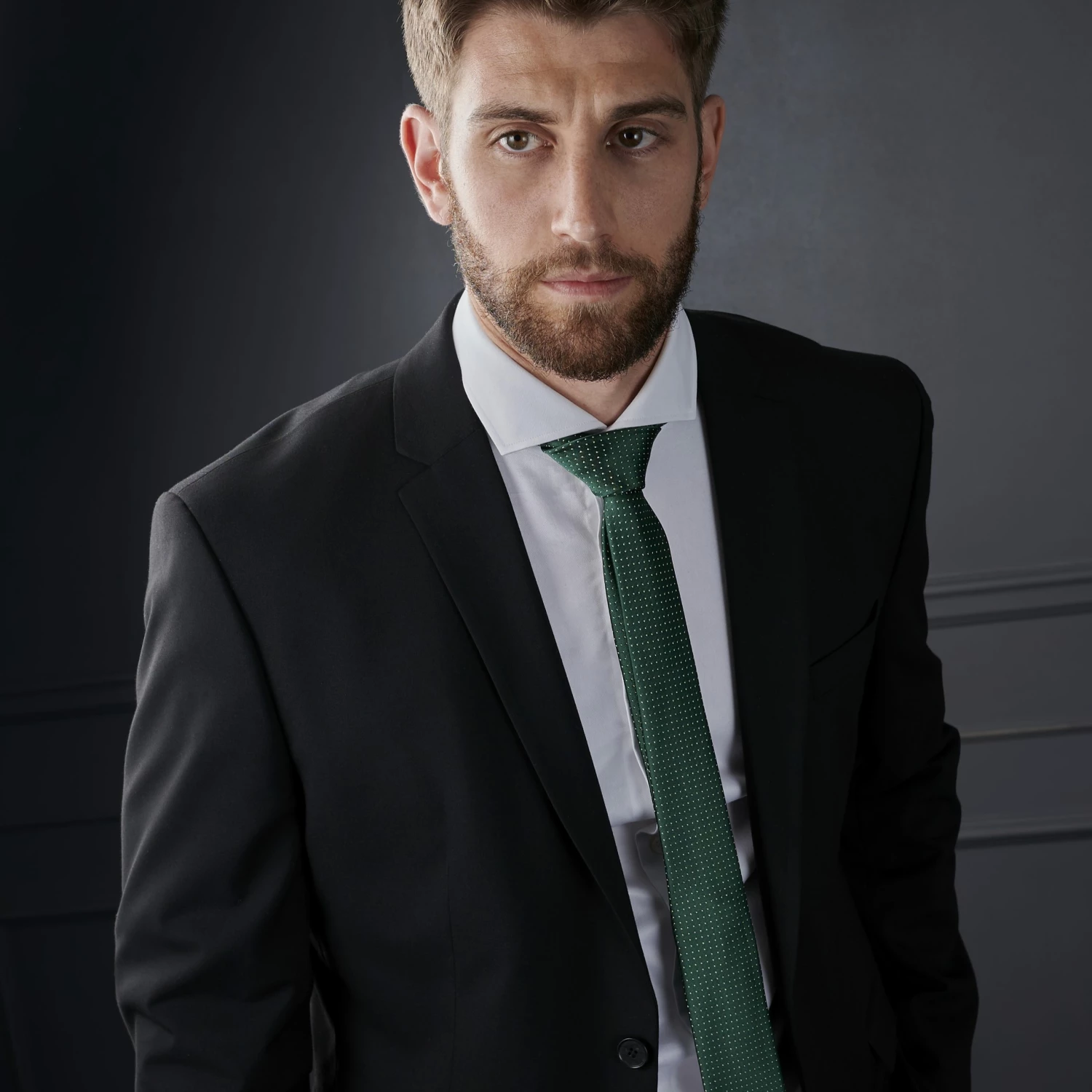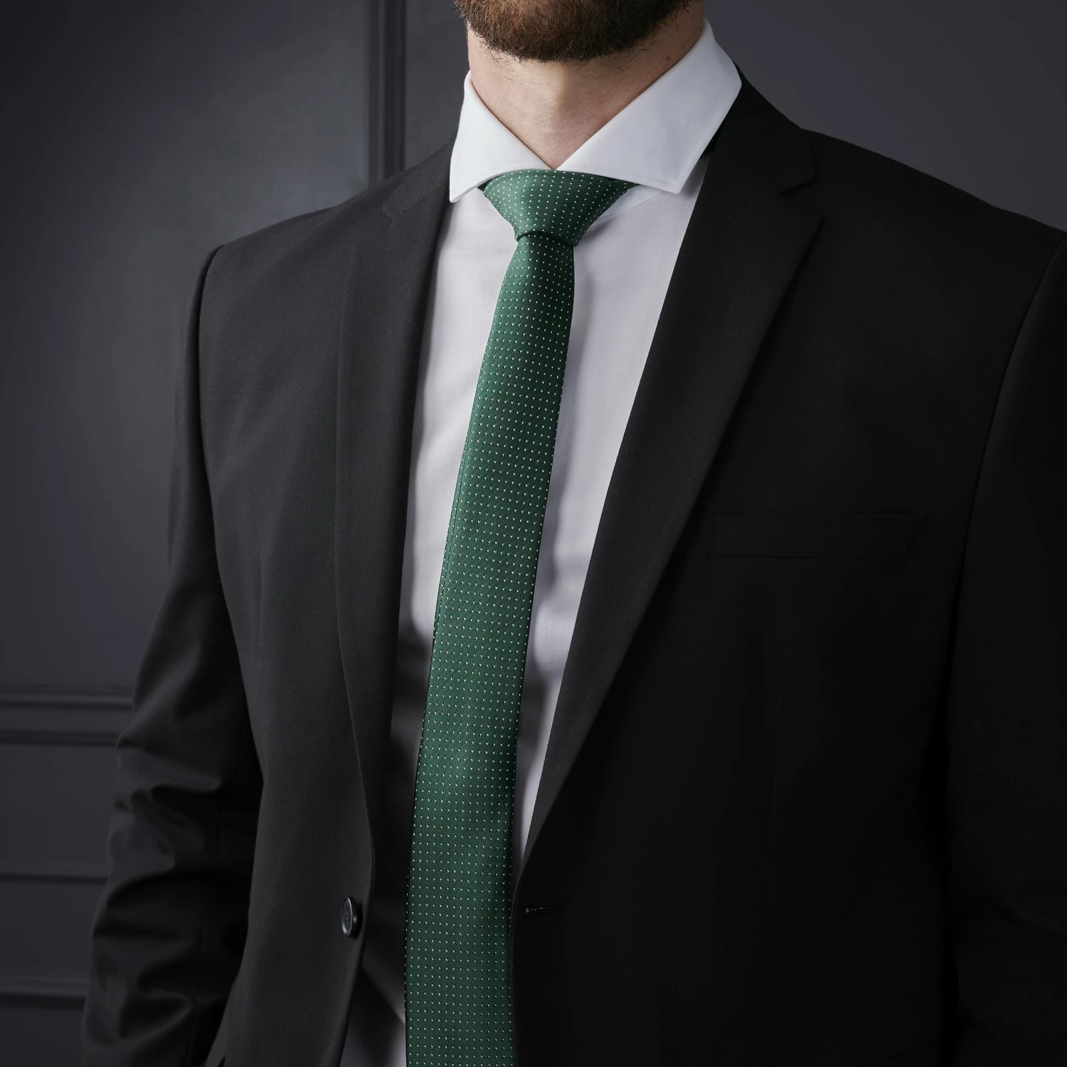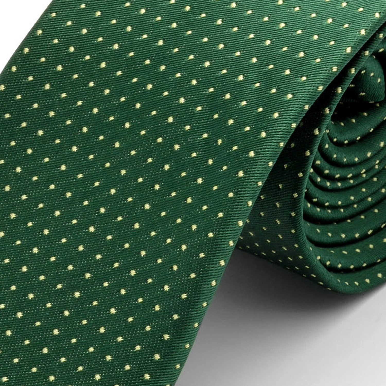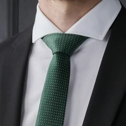 Une cravate minimaliste pour l’homme moderne. Ce design Ă pois vert classique sera un incontournable dans votre garde-robe.