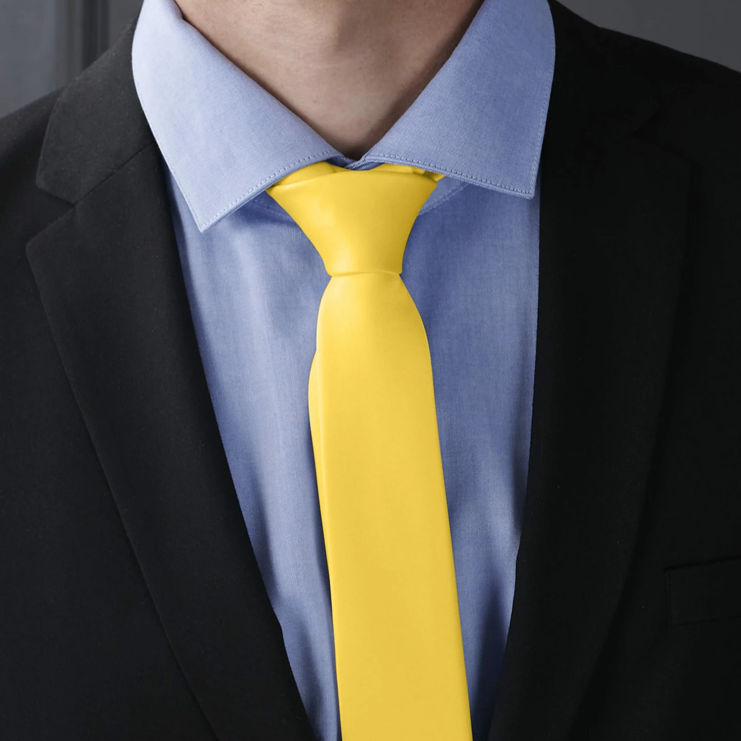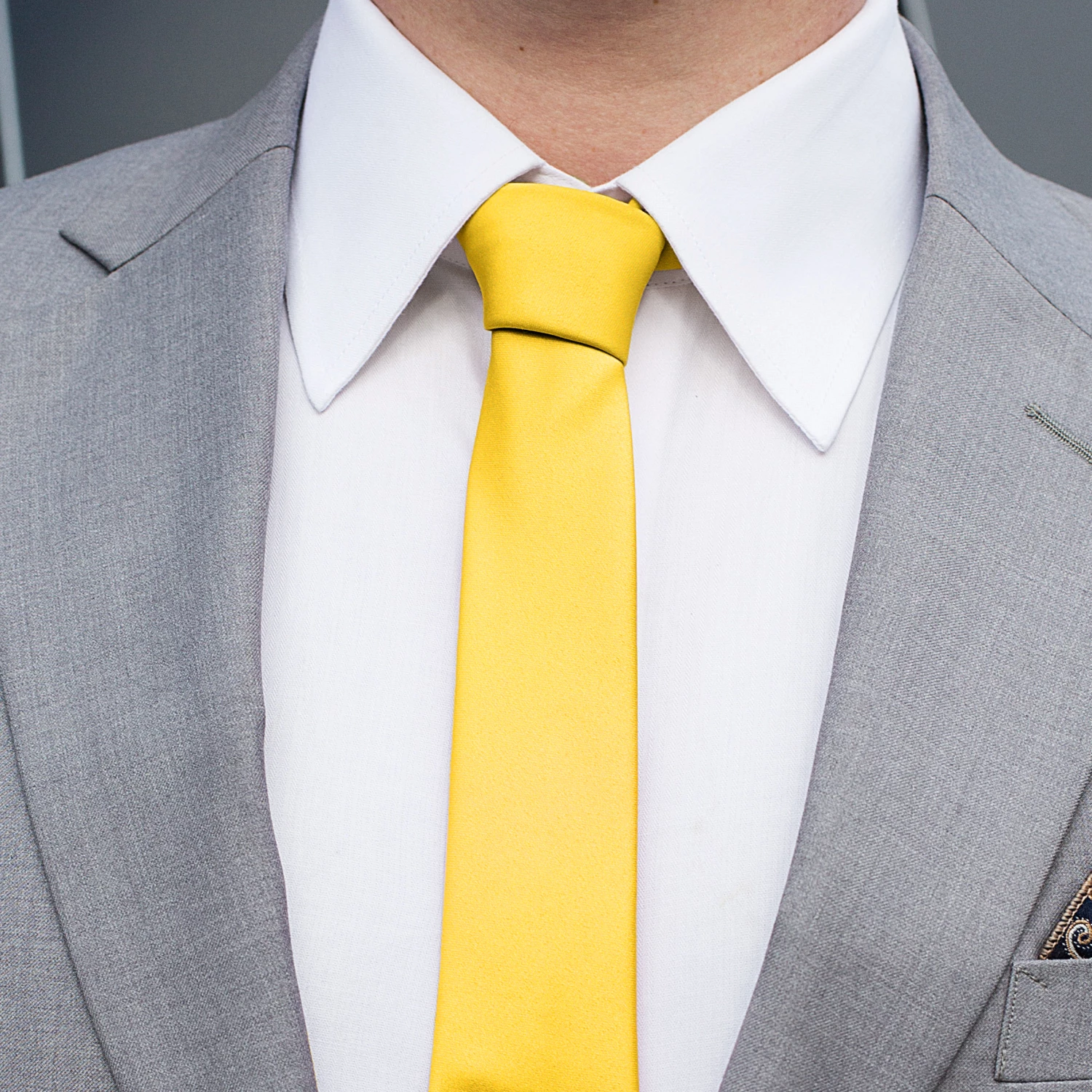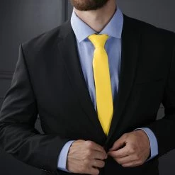 Cette cravate jaune de forme classique est un accessoire colorĂ© qui, assorti correctement, saura s’adapter Ă toutes les occasions.