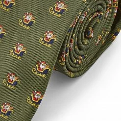 Une cravate de Noël au motif cousu représentant le Père Noël dans son traîneau, cravate qui égayera votre cou et sera très à propos durant la période des fêtes.