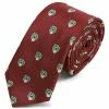 DĂ©corĂ©e de charmants symboles caractĂ©ristiques de la pĂ©riode de NoĂ«l, cette cravate rouge bordeaux pourra ĂȘtre nouĂ© de 1000 maniĂšres diffĂ©rentes (ou presque), au grĂ© de votre imagination.