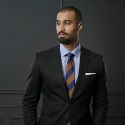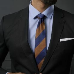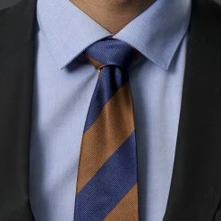 Cette splendide cravate marron et bleu marine apportera une touche de charme classique Ă votre tenue vestimentaire.