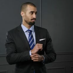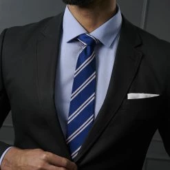 Des rayures blanches épurées contrastent magnifiquement avec le fond bleu marine de cette cravate en soie fine, lui conférant une allure sobre et trÚs élégante.