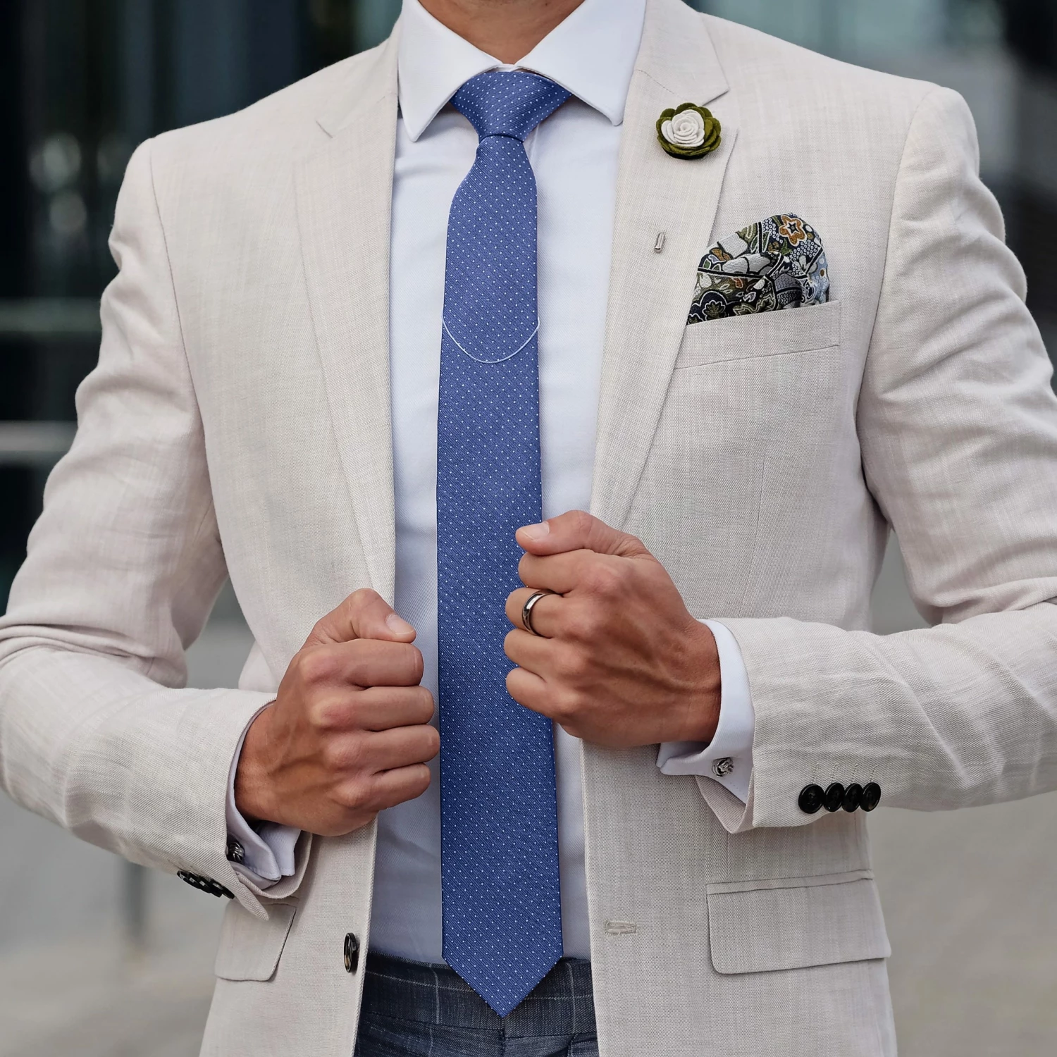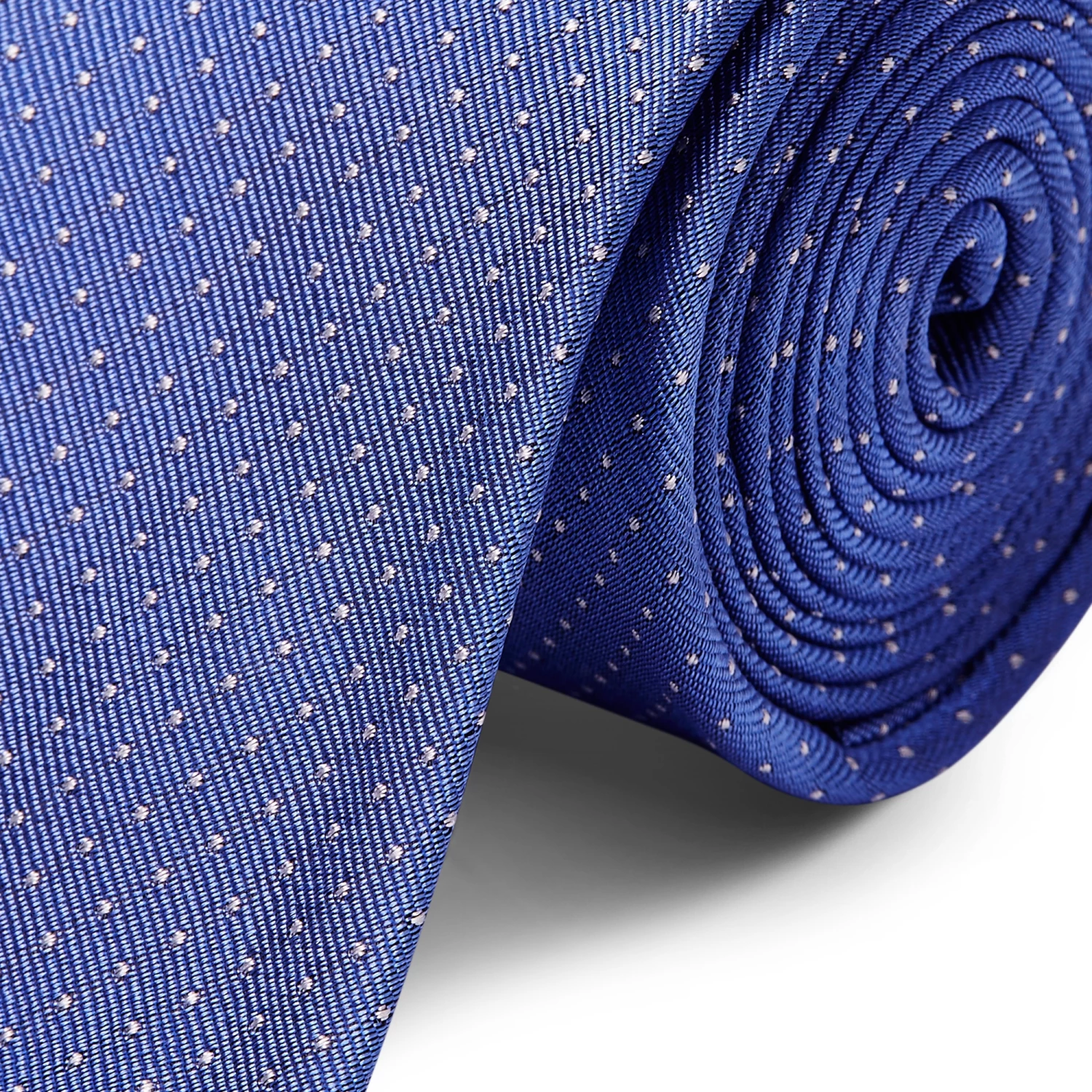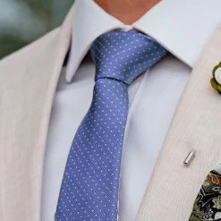 DĂ©corĂ©e d’un motif Ă petit pois blancs, cette cravate bleu pastel donnera une touche dĂ©licatement Ă©lĂ©gante Ă votre tenue vestimentaire.