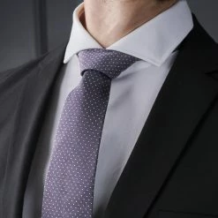 Cette cravate discrÚte et sobre arbore un trame grise subtilement décorée de pois blancs : un accessoire parfait pour accompagner vos tenues les plus élégantes.