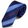 De fines rayures dorées viennent souligner de manière subtilement contrastée les larges rayures bleues de cette magnifique cravate.