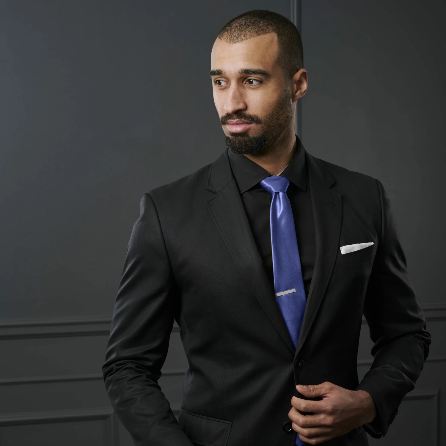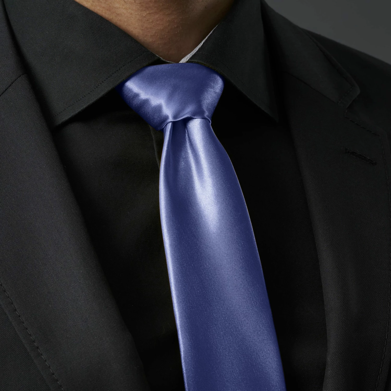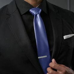 Voici une cravate bleu marine brillante et informelle qui correspondra Ă la fois aux couleurs claires et plus sombres contrastantes parfaitement.