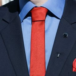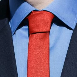 Une cravate rouge brillant dans cette teinte de rouge profond est un bon accessoire formel.