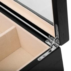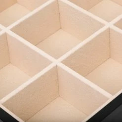 L’intérieur est doublé de velours couleur crème et divisé en 9 compartiments individuels. Sa base est recouverte de feutre pour ne pas rayer vos meubles.